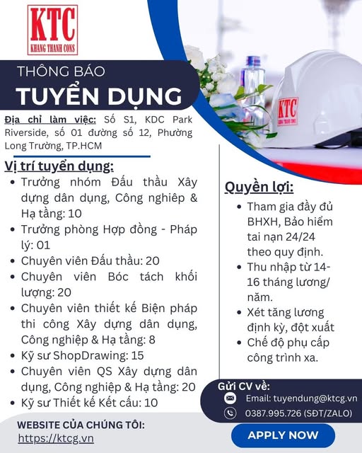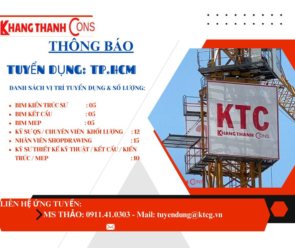 THÔNG BÁO TUYỂN DỤNG – CÔNG TY CỔ PHẦN XÂY DỰNG VÀ ĐẦU TƯ KHANG THÀNH